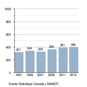 b. Statistique Canada, Profils des communautés de 2001 : Abercorn, Ottawa. 01/02/07. Consultado el 27 de noviembre de 2015. (en francés)