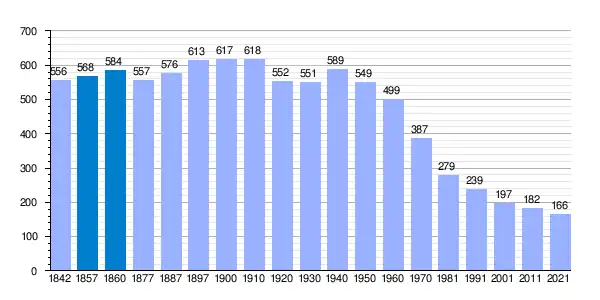 | Gráfica de evolución demográfica de Abia de las Torres[4] entre 1842 y 2021 |