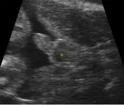 La ecografía o ultrasonografía, ya sea vaginal o abdominal, verifica varios marcadores del sexo fetal. A partir de la 12.ª semana de embarazo puede determinarse correctamente el sexo en 3⁄4 de los fetos, según un estudio de 2001.[44] La fiabilidad en fetos masculinos es del 50% y casi del 100% en fetos femeninos. A partir de la 13.ª semana de embarazo, la ecografía da un resultado fiable en prácticamente el 100% de los casos.[44]