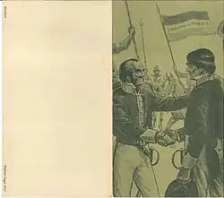 “Cambiadas las primera palabras con Lavalleja, Rivera se negó a cooperar en la empresa libertadora, fundándose en que estaba al servicio del imperio y no podía traicionarlo[…] Se le hizo retirar enseguida a una tienda de campaña, guardada por centinelas de vista [...] Entregado quedó el brig. Rivera a sus reflexiones hasta las dos de la mañana, mas viendo que el término final se aproximaba, mandó llamar al gral. Lavalleja y le dijo: «compadre estoy decidido vamos a salvar a la patria, y cuente ud. para todo y en todo conmigo». Lavalleja le abrazó entonces…”[2]