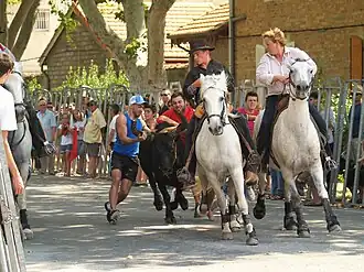 - ↑ Chesnais, Stéphane (17 de agosto de 2017). «La tradition du déjeuner aux prés et des abrivados longues de Vauvert». Vauvert + Petite Camargue. Consultado el 6 de mayo de 2020.