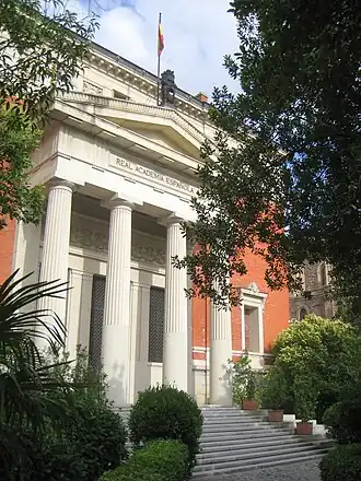 - La Real Academia Española, establecida en Madrid, fundada por el duque de Escalona en 1713 para cultivar y fijar la pureza de la lengua castellana;
