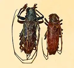 Acalolepta australis de Nueva Guinea. Macho y hembra. | ||