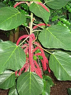 - ↑ «Acalypha hispida». Tropicos.org. Missouri Botanical Garden. Consultado el 5 de febrero de 2014.