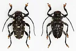 - ↑ a b c d e f «Acanthoderes daviesii». Instituto de Investigación para el Desarrollo - Base de données Titan sur les Cerambycidés ou Longicornes (en francés). Consultado el 5 de junio de 2022.