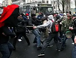 - ↑ «Провокация спецслужб на Социальном марше (Видео)» (en ruso). charter97.org. 4 de noviembre de 2007. Consultado el 13 de noviembre de 2017.