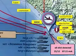 - ↑ «На месте крушения Ту-154 спасатели обнаружили еще два тела». РИА Новости (en ruso). Consultado el 26 de diciembre de 2016.