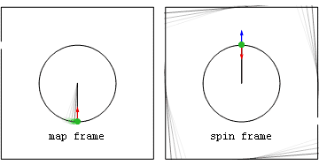 ![]() Desde la referencia fija, lo más peligroso es la velocidad tangencial, desde la referencia giratoria, el peligro está en la aceleración geométrica. |
