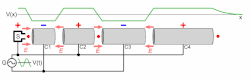 Principio de construcción de un acelerador lineal según Ising y Wideröe.