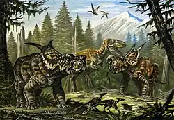 - ↑ a b Sampson, S. D.; Loewen, M. A., "Unraveling a radiation: a review of the diversity, stratigraphic distribution, biogeography, and evolution of horned dinosaurs. (Ornithischia: Ceratopsidae)", in Ryan, Chinnery-Allgeier & Eberth (2010), pp. 405–427