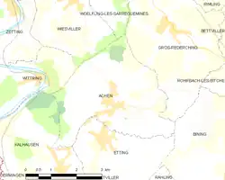Achen es una población y comuna francesa, en la región de Lorena, departamento de Mosela, en el distrito de Sarreguemines y cantón de Rohrbach-lès-Bitche.