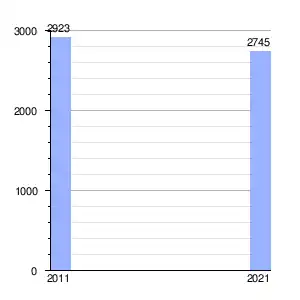 | Gráfica de evolución demográfica de Achete, Azoia de Baixo e Póvoa de Santarém entre 2011 y 2021 |