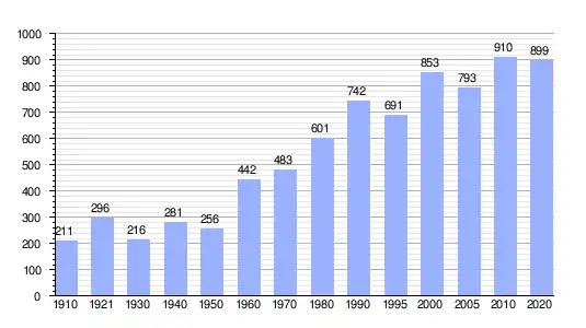 Población de los censos y conteos del Instituto Nacional de Estadística y Geografía (INEGI).[6] |