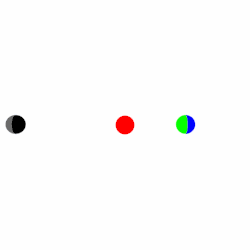 Dos cuerpos orbitando alrededor de uno central (rojo). El más cercano está acoplado, mientras que el más lejano no.