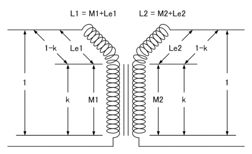 El coeficiente de acoplamiento es la fracción del flujo de la bobina primaria que atraviesa la bobina secundaria, y es función de la geometría del sistema. El coeficiente de acoplamiento, k, varia entre 0 y 1.