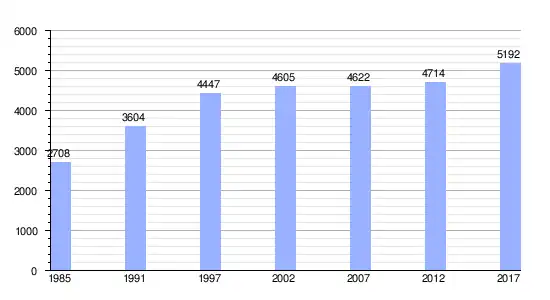 | Gráfica de evolución demográfica de Acoua entre 1985 y 2017 |
