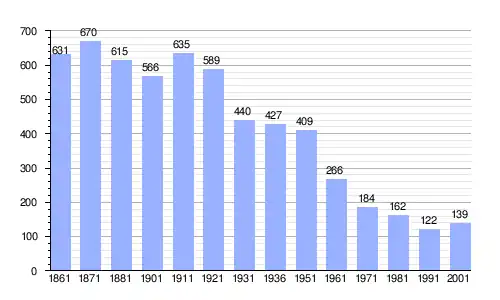 | Gráfica de evolución demográfica de Acquacanina entre 1861 y 2001 |