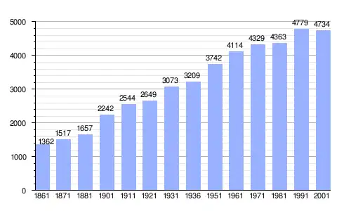 | Gráfica de evolución demográfica de Acquarica del Capo entre 1861 y 2001 |