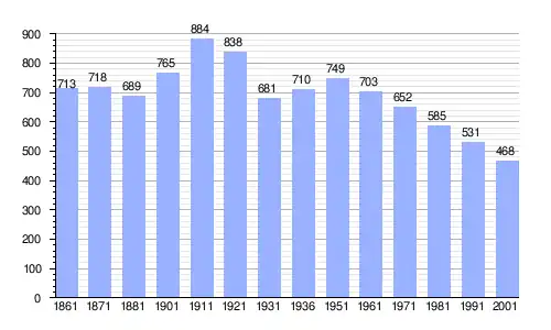 | Gráfica de evolución demográfica de Acquaviva d'Isernia entre 1861 y 2001 |
