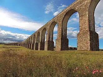 Durante su trayecto, atraviesa una cañada, en donde alcanza una profundidad de 62 metros de altura y levantan la obra cuatro niveles de arcos. La longitud total de esta obra es de 430 metros.