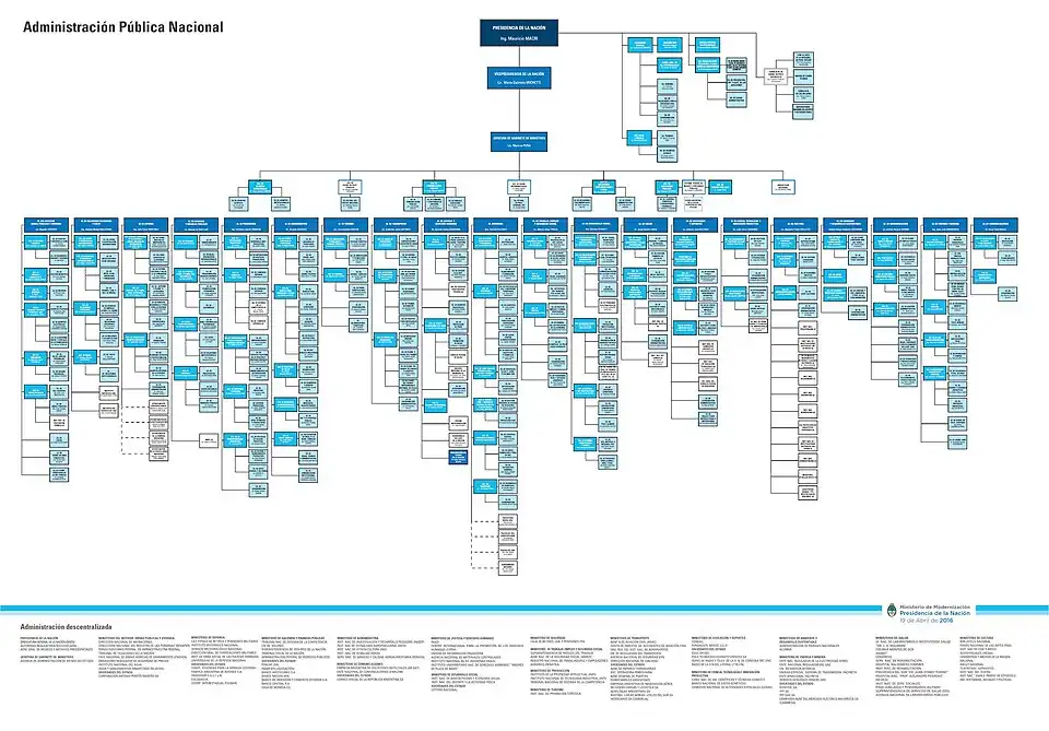 27. Portal «Mapa del Estado». Ministerio de Modernización de la Nación (2016). «Organigrama de la Presidencia de la Nación Argentina». Archivado desde el original el 27 de octubre de 2016. Consultado el 27 de octubre de 2016.