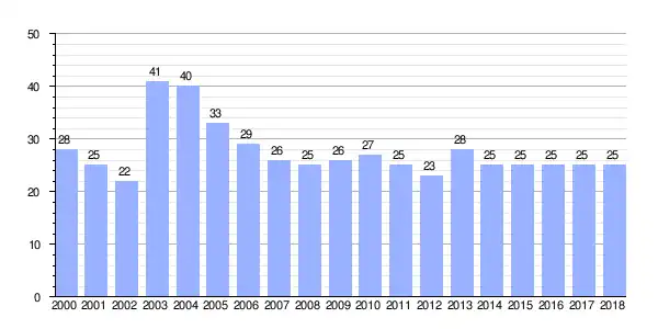 | Gráfica de evolución demográfica de Adoufe entre 2000 y 2018 |
