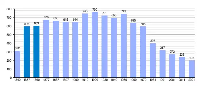 | 1842 | 1857 | 1860 | 1877 | 1887 | 1897 | 1900 | 1910 | 1920 | 1930 | 1940 | 1950 | 1960 | 1970 | 1981 | 1991 | 2001 | 2017[9] | |||||||||||||||||