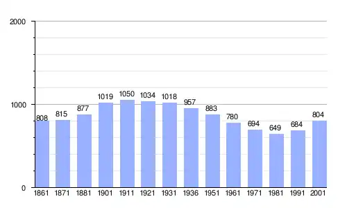 | Gráfica de evolución demográfica de Adrara San Rocco entre 1861 y 2001 |