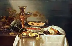 - ↑ «Adriaen Jansz. Kraen (Haarlem 1619-1679), A roemer, an upturned tazza, grapes, peaches and salmon on pewter platters, olives in a porcelain bowl, and other objects on a partly draped table» (en inglés). Consultado el 22 de febrero de 2018.