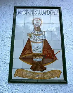 Dentro del gran Parque de San Francisco, en pleno centro de Oviedo y que es el verdadero pulmón de la ciudad hay una parte de él llamado «Parque de La Virgen de Covadonga» que está situado en el ángulo suroccidental del parque de San Francisco. En la pared externa de uno de los pequeños edificios de conservación hay un mosaico de azulejos policromados que forman la imagen de la Virgen de Covadonga. Delante de este mosaico hay un estanque bastante grande con bancos alrededor. Es un lugar a donde acuden muchos ovetenses y visitantes para rezar a la Virgen un rosario u otras oraciones.