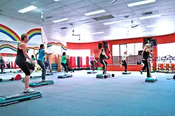 Aeróbic o aerobic[1] es un tipo de gimnasia que se realiza al son de la música, en un gimnasio, un salón o al aire libre. El aeróbic reúne todos los beneficios del ejercicio aeróbico, además de ejercitar capacidades físicas como la flexibilidad, coordinación, orientación, ritmo, etc. El ritmo de las sesiones de aeróbic varía en función de la edad del público que lo practica. Las canciones utilizadas marcan la intensidad en cada momento de la clase. El aeróbic también debe incluir ejercicios de calentamiento y estiramientos. Existen otras modalidades de este deporte, como la practicada en la piscina (puede denominarse aeróbic acuático), la que incorpora una plataforma de baja altura (step), o la que combina ejercicios aeróbicos con tonificación muscular.