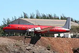 En marzo de 1979 Spantax donó este aparato al Real Aeroclub de Gran Canaria. Transportar dicho avión desde Gando (Aeropuerto de Gran Canaria) hasta el sur turístico constituyó una auténtica odisea. Primeramente, le quitaron los cuatro motores con el fin de agilizar el peso en su transporte marítimo, después lo llevaron a la playa de la Base Aérea de Gando, y allí le pusieron unos grandes flotadores en los planos y en la mayor parte de su fuselaje, y lo remolcaron hasta el aeródromo. La llegada del avión a El Berriel fue todo un acontecimiento. Una vez allí, lo trasladaron donde hoy está para su contemplación.