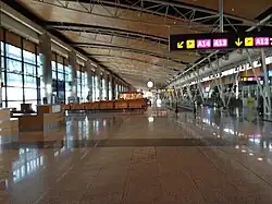 El Aeropuerto Adolfo Suárez Madrid-Barajas (IATA: MADOACI: LEMD),[3][4]​ llamado hasta 2014 Aeropuerto de Madrid-Barajas,[4]​ es un aeropuerto español público propiedad de Aena, situado a 12 km del centro de Madrid dirección noreste. Está ubicado en el distrito de Barajas, en el término municipal de Madrid y se extiende también por los municipios de Paracuellos de Jarama, San Sebastián de los Reyes y Alcobendas. Es el primer aeropuerto español por tráfico de pasajeros, carga aérea y operaciones,[5]​ así como el cuarto de Europa y decimocuarto del mundo por número de pasajeros[6]​ y el segundo aeropuerto más grande de Europa en tamaño físico, detrás del Aeropuerto Charles de Gaulle de París.