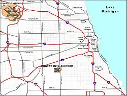 El Aeropuerto Internacional Midway (en inglés, Chicago Midway International Airport) (IATA: MDWOACI: KMDWFAA LID: MDW), también conocido como Aeropuerto Midway o Midway, es un aeropuerto en Chicago, Illinois, Estados Unidos, localizado en el lado suroeste de la ciudad, a 13 kilómetros del Loop de Chicago. El actual código IATA MDW ha sido usado desde 1949 cuando el Aeropuerto Municipal de Chicago fue renombrado por Airport Chicago Midway,[3]​ a pesar de que los vuelos de programación continuaron nombrándolo CHI hasta que comenzaron los vuelos en el Aeropuerto O'Hare. Está rodeado por la calle 55, la Avenida Cicero (entrada de la terminal), la calle 63, y la Avenida Central. La parte norte del aeropuerto está dentro del área comunitaria de Garfield Ridge y la parte sur en el barrio de Clearing. El aeropuerto es administrado por el Chicago Airport System, que también supervisa las actividades del Aeropuerto Internacional O'Hare y el Aeropuerto Internacional de Gary-Chicago.[4]​ El aeropuerto lleva el nombre de la Batalla de Midway durante la II Guerra Mundial.