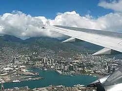 Vista de Honolulu desde un avión despegando del Aeropuerto Internacional de Honolulu.