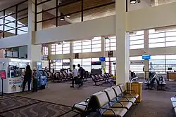 El aeropuerto cuenta con una terminal que tiene cinco puertas de embarque.[5] También dispone de dos pistas, ambas pavimentadas con asfalto; la pista principal va en dirección 2/20 y mide 9007 x 150 pies (2745 x 46 m), mientras que la otra, 12/30, cubre 3510 x 75 pies (1070 x 23 m).[6]