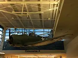 Douglas SBD Dauntless dentro del aeropuerto como parte del memorial de la Batalla de Midway.