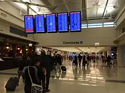 Frontier Airlines Atlanta, Baltimore, Dallas/Fort Worth, Denver, Houston–Intercontinental, Filadelfia, Las Vegas, Miami, Newark (inicia el 7 de octubre de 2025),[16]Orlando, Phoenix–Sky Harbor, Tampa C