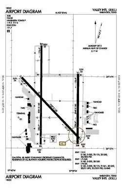 - ↑ a b c d Registro principal de la FAA para el HRL (Forma 5010 PDF). Administración Federal de Aviación. Consultado el 15 de noviembre de 2012.