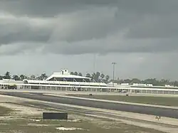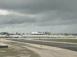 El aeropuerto internacional se encuentra situado a una altitud de 5 msnmm, tiene una superficie de terminal de 9,514m², una clasificación OACI 4D y dos pistas de aterrizaje de 2,700 metros de longitud y 45 metros de ancho y la otra de 2,500 metros de longitud y 45 metros de ancho hecha de asfalto, y calles de rodaje de 23 metros de ancho, con capacidad de recibir aviones Boeing 767 y de realizar 22 operaciones por hora. La plataforma cuenta con 6 posiciones de desembarque tipo C, o 4 tipo C y 1 tipo D, todas fijas.