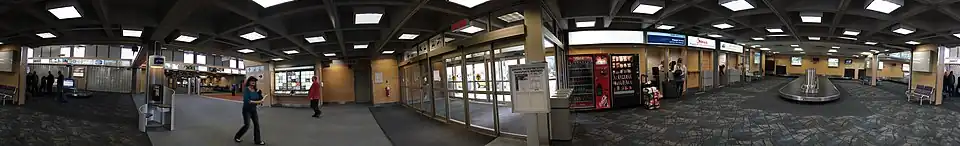 El edificio de la terminal principal, recientemente ampliado, es una instalación moderna de servicio completo que cubre aproximadamente 7,100 m² (76,000 pies cuadrados). Hay 10 puestos de carga de aviones, la mitad de los cuales están equipados con pasarela de acceso a aeronaves. El área de arribos contiene tres bandas de reclamo de equipaje, una de las cuales se puede acordonar para acomodar arribos internacionales/estadounidenses (y los dos restantes para arribos nacionales) y procesamiento de Aduanas canadienses (el aeropuerto tiene un área de inspección previa al embarque CATSA, pero no embarque de predespacho de aduana de Estados Unidos).