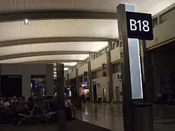 El complejo Central de la Terminal B es tres veces del tamaño de la Terminal B original con las dos partes del complejo - salidas y llegadas - conectados por un movedor automatizado de personas.