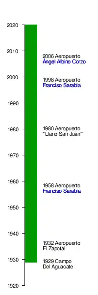 Aeropuertos de Tuxtla Gutiérrez a través del tiempo