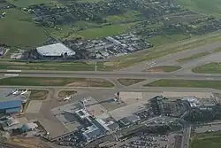 El aeropuerto cubre 138 ha (340 acres) y tiene dos pistas: