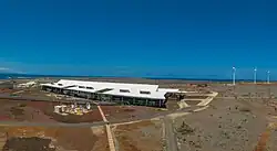 La construcción de la terminal se realizó con material reciclado del antiguo aeropuerto, con tubos desechados de instalaciones petroleras y con un diseño que aprovecha las condiciones naturales: para la ventilación, por ejemplo, se orientaron las ventanas en dirección de la corriente de aire, no existen habitaciones o salones con aire acondicionado; solamente la sala de los servidores (computadoras y comunicaciones) cuenta con climatización.