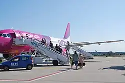 OLT Express es la mayor aerolínea en el aeropuerto. Dispone de cinco Airbus 320 con base en el aeropuerto, dando servicio a 23 destinos. Wizz Air tiene una importante presencia en el aeropuerto también.