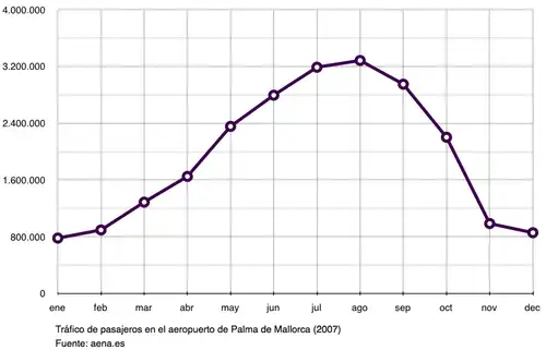 - ↑ Aena (Marzo 2001). «Evolución previsible de la demanda». Plan Director del Aeropuerto de Palma de Mallorca. Consultado el 28 de marzo de 2025.