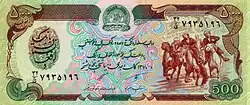 500 afganis Azul 152 x 64 mm 500 - افغانۍ ۵۰۰ - Emblema del Banco de Afganistán - د افغانستان بانک 500 Afghanis - افغانۍ ۵۰۰ - Arco de Bost - Da Afghanistan Bank