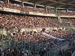 - ↑ a b La Curva Sur del Stadio delle Alpi era llamada Scirea en homenaje al defensa y capitán de la Juventus y de la selección de fútbol de Italia Gaetano Scirea (1953-1989). Antiguamente también se le llamaba Filadelfia a la Curva Sur del Estadio Olímpico de Turín por la carretera que pasa por debajo de la tribuna.