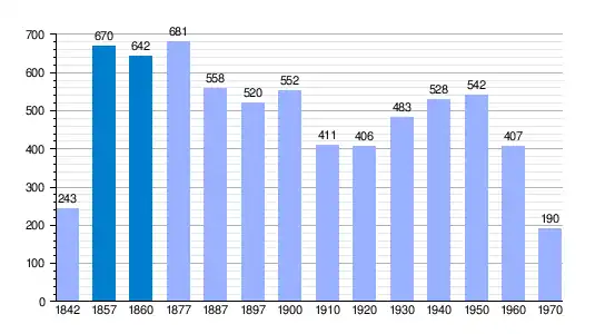 | Gráfica de evolución demográfica de Aforados de Moneo[2] entre 1842 y 1970 |
